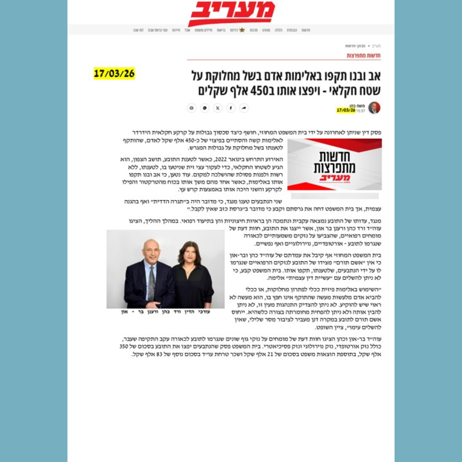 | 7859 | 28.12.25 - | בית המשפט קבע: חברת הנדל"ן תשיב מיליונים לרו... |